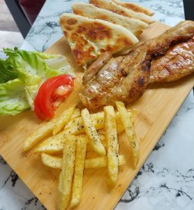 Aπό το μεσημέρι μέχρι και αργά το βράδυ η ομάδα του βάζει φωτιά στις ψησταριές και σε περιμένει να περάσεις για σουβλάκι, κοτομπέϊκον, μπιφτέκι απλό ή γεμιστό, πανσέτα και λουκάνικο.