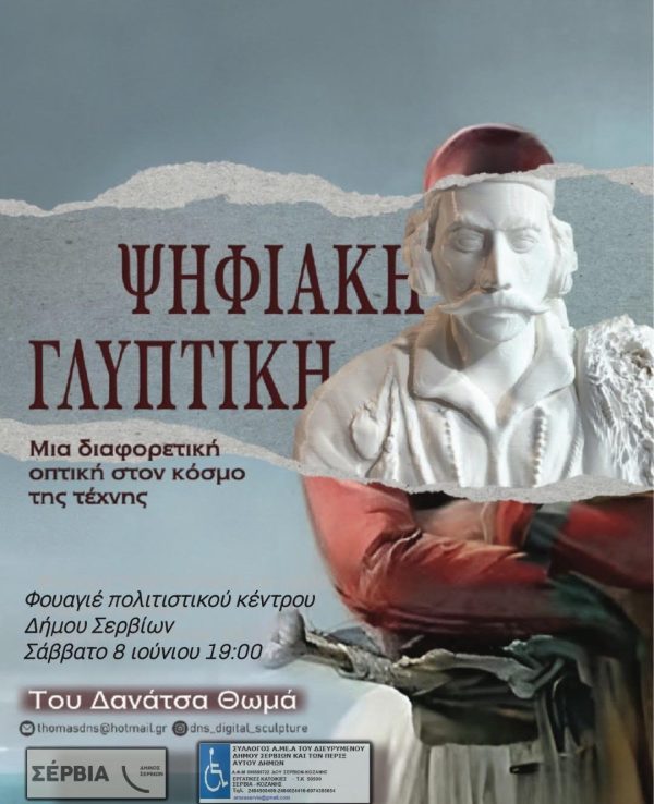 Ο Σύλλογος ΑμεΑ του διευρυμένου Δήμου Σερβίων και των πέριξ αυτού δήμων σε συνεργασία με το Δήμο Σερβίων, διοργανώνει μια ξεχωριστή καλλιτεχνική έκθεση «Ψηφιακής Γλυπτικής» του διακεκριμένου καλλιτέχνη Μάκη Δανάτσα.