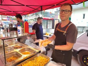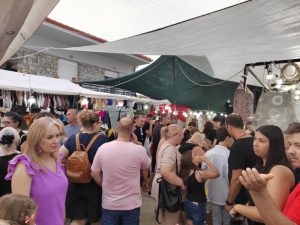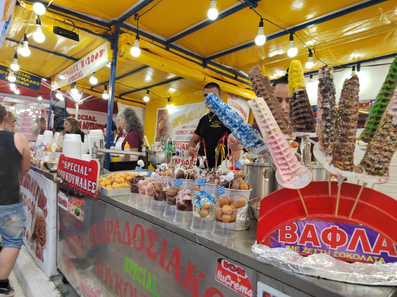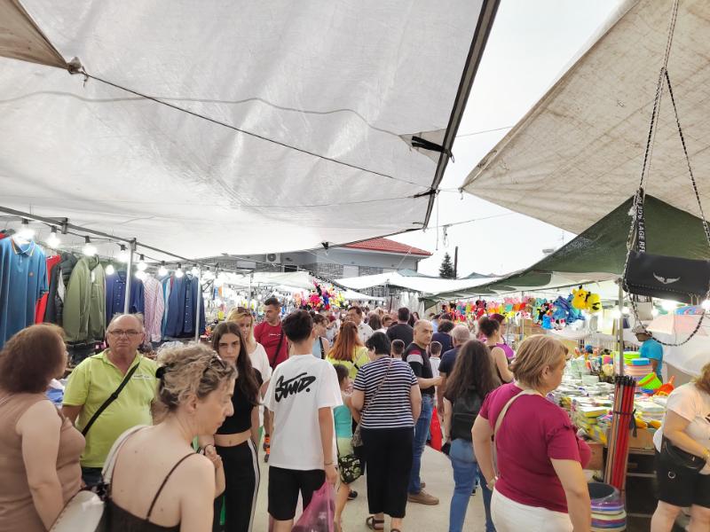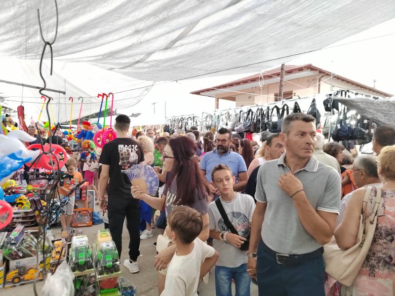 Η φετινή εμποροπανήγυρη φιλοξενεί 185 εκθέτες και κανείς μπορεί να βρει από παιχνίδια και ρούχα μέχρι γλυκά, όπως χαλβά και λουκουμάδες, καθώς και άλλα τρόφιμα, ενώ οι ψησταριές έχουν την τιμητική τους.