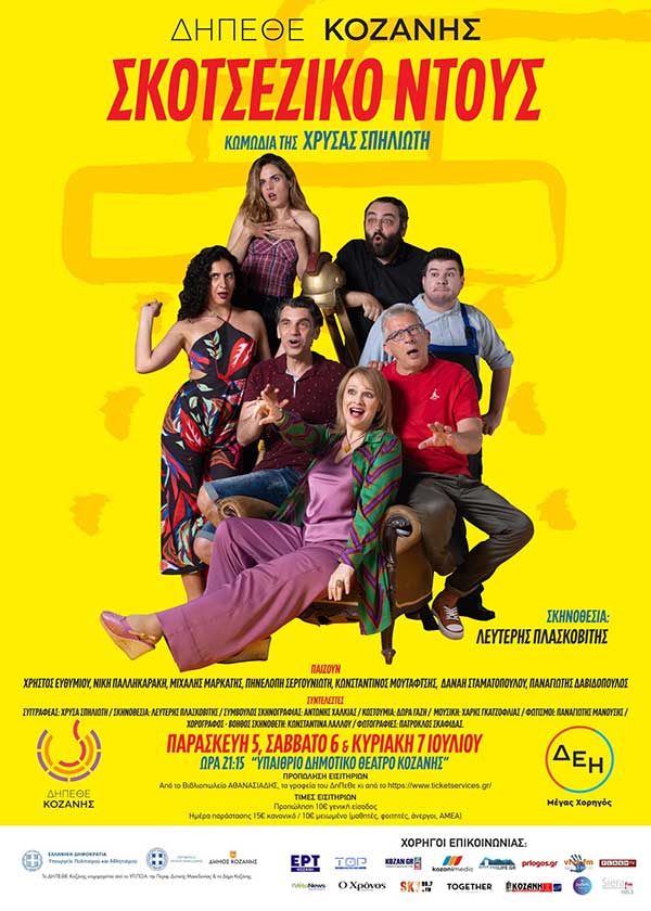 «Σκωτσέζικο Ντούς» Κωμωδία της Χρύσας Σπηλιώτη, Κοζάνη, Υπαίθριο Δημοτικό Θέατρο, Παρασκευή 5, Σάββατο 6, Κυριακή 7 Ιουλίου 9:15 μ.μ.