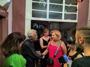 Ο Κώστας Χατζής από την κατάμεστη αυλή του Φιλοπρόοδου μέσα από τα τραγούδια και το δικό του χιούμορ έδωσε το μήνυμα ότι “όταν αγαπάς αυτό που κάνεις, δεν έχει σημασία η ηλικία, όπως και η καταγωγή γιατί όταν αυτοσαρκάζεσαι, περνάς τα ωραιότερα μηνύματα και το κάνω αυτό 70 χρόνια τώρα’.