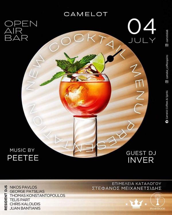 Διοργανώνει και σας προσκαλεί στα event του, στις 3 Ιουλίου sushi βραδιά με dj τον Chris kaloudi και στις 4 Ιουλίου ένα καλοκαιρινό μοναδικό πάρτι όπου θα έχετε την ευκαιρία να δοκιμάσετε cocktails από τη ανανεωμένη signature λίστα του. Στη βραδιά θα δώσουν τις εντάσεις και το ύφος που αρμόζει, οι djs PEETEE, με geust εμφάνιση τον INVER.