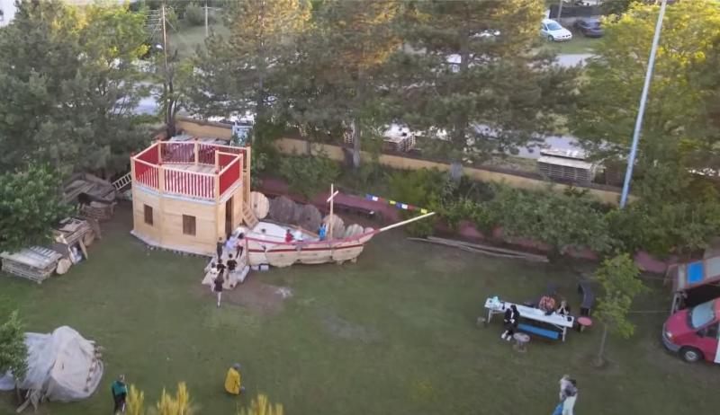 Για την κατασκευή του παιδότοπου, επαναχρησιμοποιήθηκαν παλέτες και ξύλινα στροφεία από έργο ανάπτυξης της Principia στην Κοζάνη.