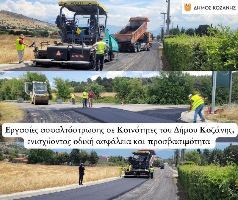 Σε πλήρη εξέλιξη είναι εργασίες ασφαλτόστρωσης του Δήμου Κοζάνης σε Κοινότητες και Οικισμούς, στο πλαίσιο υλοποίησης του έργου «ΣΥΝΤΗΡΗΣΗ ΔΗΜΟΤΙΚΩΝ ΟΔΩΝ ΚΟΙΝΟΤΗΤΩΝ (ΠΛΗΝ ΠΟΛΗΣ ΚΟΖΑΝΗΣ)».