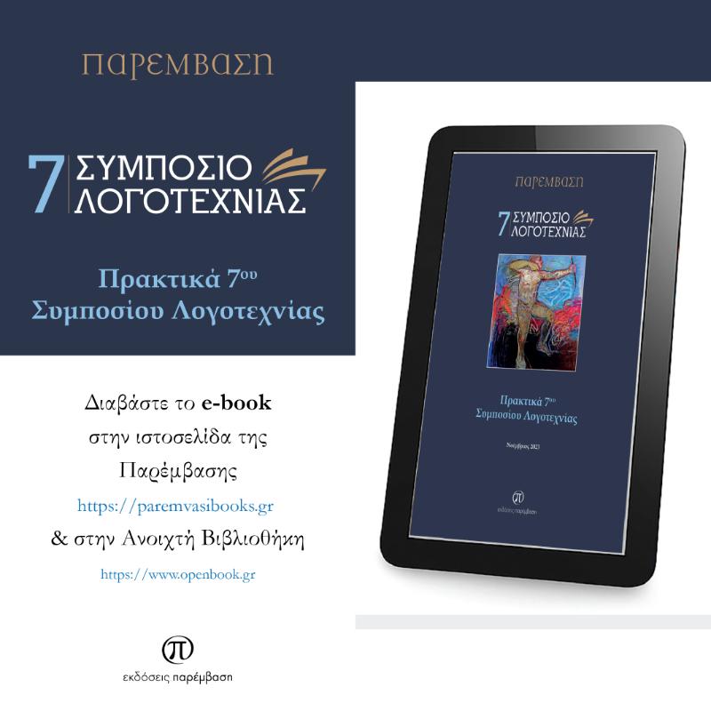 Μόλις κυκλοφόρησαν σε E-book τα Πρακτικά του 7ου Συμποσίου Λογοτεχνίας, που πραγματοποίησε το περιοδικό και φορέας πολιτισμού «Παρέμβαση» τον Νοέμβριο του 2023 στην Κοζάνη. Tα πρακτικά περιέχουν εισηγήσεις ποικίλης θεματικής πολλών και εξειδικευμένων εισηγητών, καθώς και απομαγνητοφωνημένες live συνεντεύξεις που πραγματοποιήθηκαν κατά τη διάρκεια του Συμποσίου.