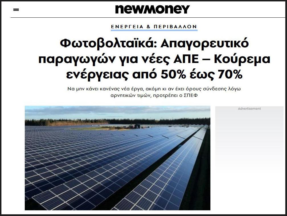 [3] Λουμάκης Στέλιος: Πρόεδρος του ΣΠΕΦ (Συνδέσμου Παραγωγών Ενέργειας από Φ/Β) Πλήρης κανιβαλισμός στα μικρά φωτοβολταϊκά – Προτροπή να μην κατασκευαστεί κανένα νέο έργο
