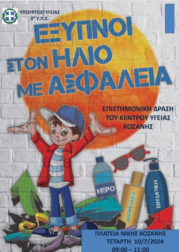 Κοζάνη 09/07/2024 Δράση με θέμα τον καύσωνα διοργανώνει το Κ.Υ. Κοζάνης 0 Το Κ.Υ. Κοζάνης θα πραγματοποιήσει δράση με θέμα τον Καύσωνα. Η δράση θα πραγματοποιηθεί την Τετάρτη 10/07/2024 και ώρα 09:00-11:00 στην κεντρική πλατεία Κοζάνης.