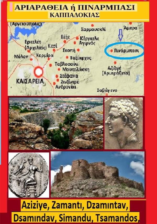 Sargarausen , Αριαράθεια· ή Αριαράτεια ή Ariarátheia) ή Ariarátia, Δασμέντα, Pınarbaşı, και ακόμη Aziziye, Zamantı, Dzamıntav, Dsamındav, Simandu, Tsamandos, Samantos