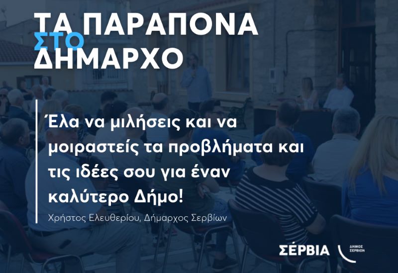 Δήμος Σερβίων: «Τα Παράπονα στον Δήμαρχο» – Ετήσια δράση επαφής με τους κατοίκους