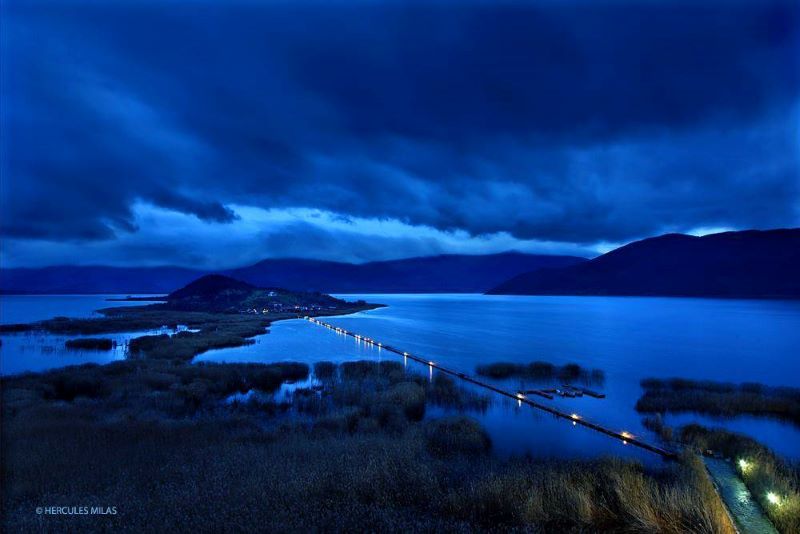 Ο Άγιος Αχίλλειος των Πρεσπών, και η πεζογέφυρά του. Πριν τη δημιουργία της πεζογέφυρας προς το νησάκι του Αγίου Αχίλλειου, τα παιδιά του χωριού της λίμνης, έκαναν καθημερινό ταξίδι με παλιές ξύλινες βάρκες ψαρέματος ως το κοντινότερο σχολείο. Τον χειμώνα όμως, υπήρχαν μέρες, που η παγωμένη λίμνη της Φλώρινας και Δυτικής Μακεδονίας, έπρεπε να διασχιστεί με τα πόδια… Φωτογραφία, ο μυθικός Ηρακλής Μήλας.