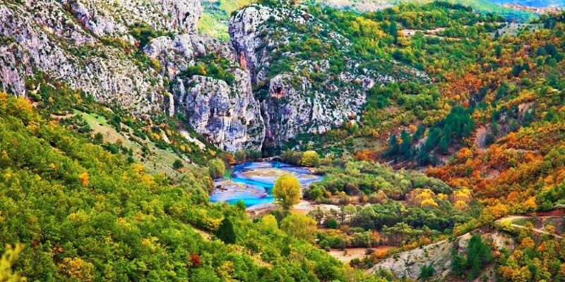 Στο βάθος, διακρίνεται ανεπαίσθητα το γεφύρι της Πορτίτσας, κάτω ακριβώς από το χωριό Σπήλαιο του νομού Γρεβενών, σημείο που αποτελεί την αρχή της Βάλια Κάλντα. Φωτογραφία από την Ορειβατική Λέσχη Εορδαίας.