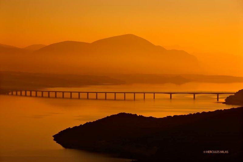 Η «Υψηλή» γέφυρα Σερβίων και η λίμνη Πολυφύτου στην Κοζάνη. Φωτογραφία σε μια μαγική ώρα, από τον Ηρακλή Μήλα.