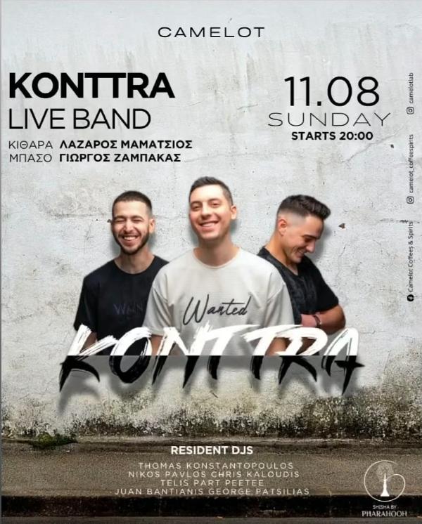Live με την Konttra Band και μουσική με Djs διοργάνωνει το Camelot Coffee and Spirits, την Κυριακή 11 Αυγούστου.