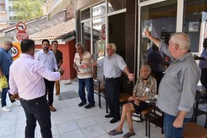 Παράλληλα, άκουσε από κοντά και με προσοχή όλα τα ζητήματα που του έθεσαν οι ελεύθεροι επαγγελματίες που δραστηριοποιούνται πέριξ της Πλατείας, καταγράφοντας θέσεις, προτάσεις και απόψεις, μέσω της ανοιχτής και άμεσης επικοινωνίας που είχε με τον κόσμο.
