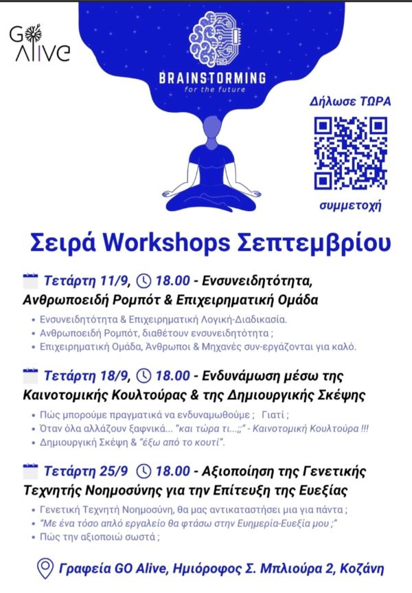 Δωρεάν Διαδραστικών Εργαστηρίων του Σεπτεμβρίου 2024 με θέμα “BRAINSTORMING for the future”: