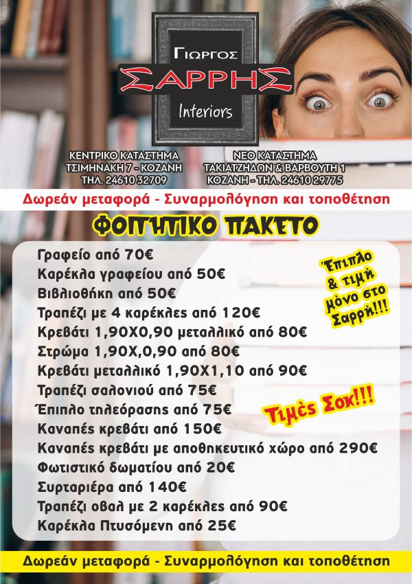 Δείτε τα φοιτητικά πακέτα του καταστήματος Σαρρής Interios στην Κοζάνη: