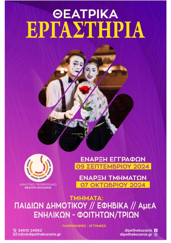 Θεατρικά Εργαστήρια από το ΔηΠεΘε Κοζάνης: Οι εγγραφές συνεχίζονται για μερικές ακόμη ημέρες. …