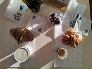 Το πρωί μας καλημερίζουν με εξαιρετικό, μοσχοβολιστό καφέ 100% Arabica που προέρχεται από τη Λατινική Αμερική και την Αφρική, με μοναδικές γεύσεις και εντάσεις, με το οποίο μπορείτε να συνδυάσετε σφολιάτες κάθε είδους, κρύα σάντουιτς, donuts, κρουασάν, νόστιμα snacks.
