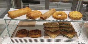 Στη λαχταριστή βιτρίνα του θα ανακαλύψεις εκτός από το κλασικό κρουασάν βουτύρου και ακαταμάχητα κρουασάν με γέμιση πραλίνα σοκολάτας, φιστίκι, ή φράουλα, χειροποίητες πίτες με χωριάτικο σπιτικό φύλλο, κρύα sandwiches,λαχταριστές μπακέτες και tortilla,donuts,μπισκότα, κριτσίνια αλλά και υγιεινές μπάρες δημητριακών.