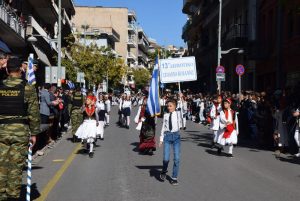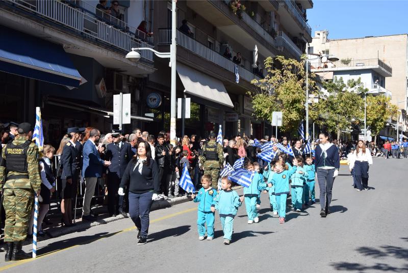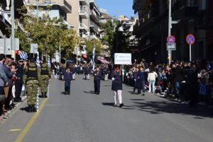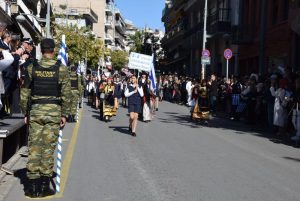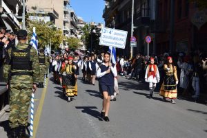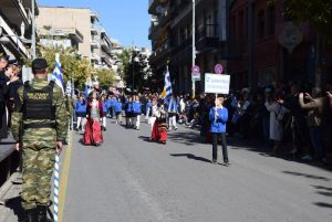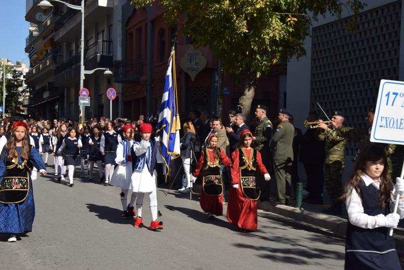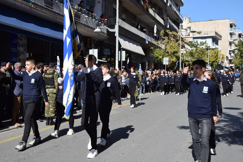 Οι εκδηλώσεις ολοκληρώθηκαν το μεσημέρι, με την μαθητική και στρατιωτική παρέλαση στην οδό Π. Μελά.