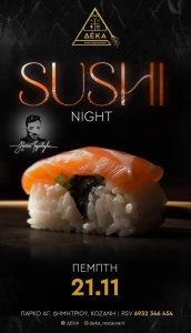 Για τους Sushi LOVERS και για σένα που περιμένεις να μυηθείς στον κόσμο του sushi, Πέμπτη 21 Νοεμβρίου 2024, στο ΔΕΚΑ.