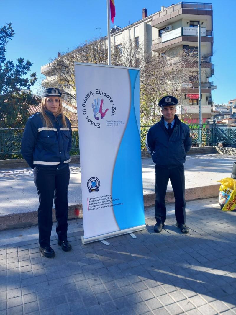 Με αφορμή την Παγκόσμια Ημέρα Εξάλειψης της Βίας κατά των Γυναικών (25η Νοέμβρη), αστυνομικό προσωπικό των Γραφείων Αντιμετώπισης Ενδοοικογενειακής Βίας των Διευθύνσεων Αστυνομίας Κοζάνης και Καστοριάς, διένειμαν ενημερωτικά φυλλάδια σε κεντρικά σημεία των πόλεων Κοζάνης και Καστοριάς, με στόχο την ενημέρωση και την ευαισθητοποίηση της κοινωνίας, καθώς και την πρόληψη και την αντιμετώπιση περιστατικών βίας σε βάρος των γυναικών.