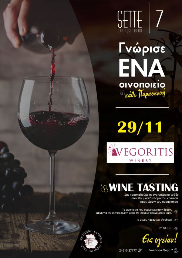 To wine bar restaurant ‘Sette’, κάθε Παρασκευή φιλοξενεί στον όμορφο χώρο του, ένα διαφορετικό Οινοποιείο από περιοχές της Δυτικής Μακεδονίας.