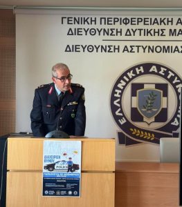 Ακολούθως, χαιρετισμό απηύθυνε ο Αναπληρωτής Διευθυντής της Διεύθυνσης Αστυνομίας Κοζάνης, Αστυνομικός Υποδιευθυντής κ. Κωνσταντίνος ΠΑΠΑΔΟΠΟΥΛΟΣ, ο οποίος αφού ευχαρίστησε τους συμμετέχοντες στην ημερίδα, τόνισε ότι είναι ιδιαιτέρως τιμητική η παρουσία της Αντιπεριφερειάρχη Παιδείας και Αθλητισμού, καθώς και της ψυχολόγου της ΓΕ.Π.Α.Δ.Δ.Μ., οι οποίες μεταλαμπάδευσαν τις γνώσεις τους στους παρευρισκόμενους, δίνοντας απαντήσεις στα ερωτήματά τους.