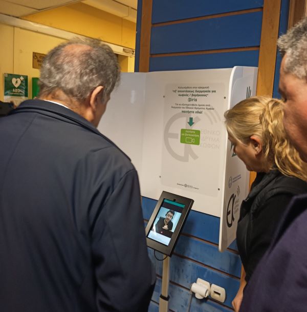 Σε συνέχεια του Δελτίου Τύπου, σας αποστέλλουμε (συνημμένα) συμπληρωματικό ενδεικτικό φωτογραφικό υλικό από την παρουσίαση των Πληροφοριακών Συστημάτων Εξυπηρέτησης των Ατόμων με Ακουστική Αναπηρία όπου αποφαίνεται η εγκατάσταση του σταθμού επικοινωνίας.