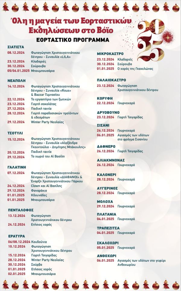 Πρόγραμμα εορταστικών εκδηλώσεων Δήμου Βοΐου