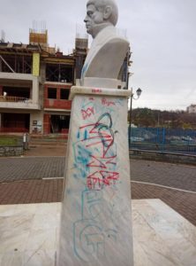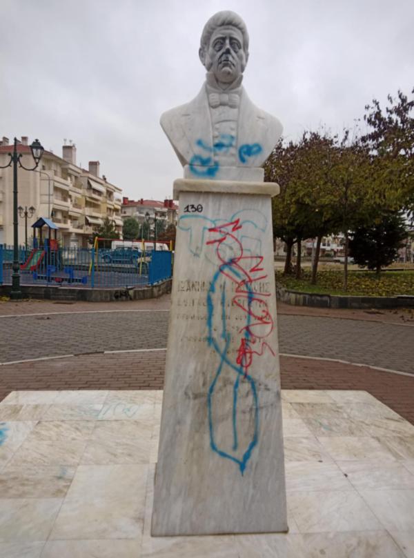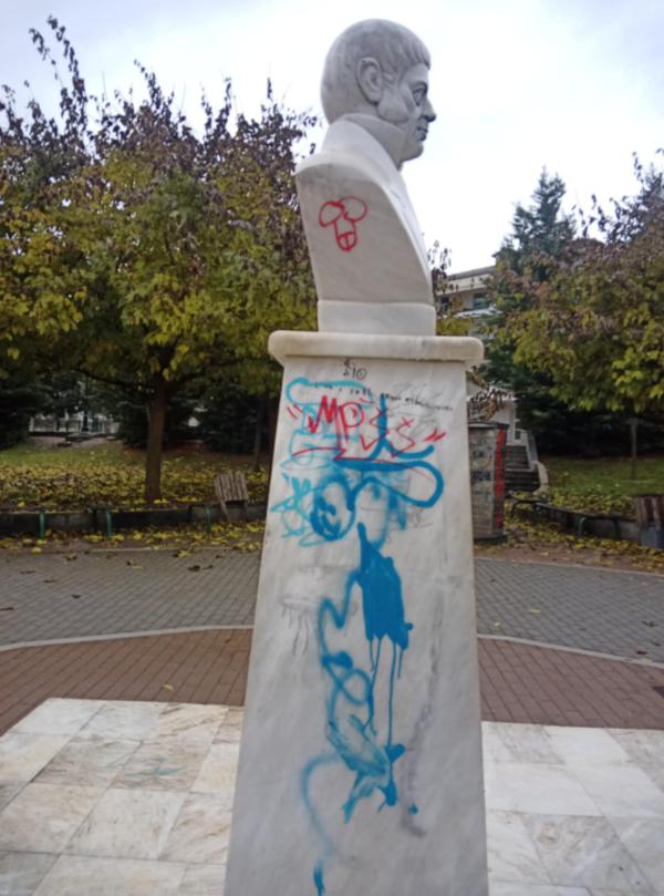 Άγνωστοι για μία ακόμη φορά ζωγράφισαν διάφορα συνθήματα στην προτομή του ευεργέτη Ιωάννη Ν. Παπάφη, στην ομώνυμη πλατεία επί της οδού Μακρυγιάννη στην Κοζάνη.