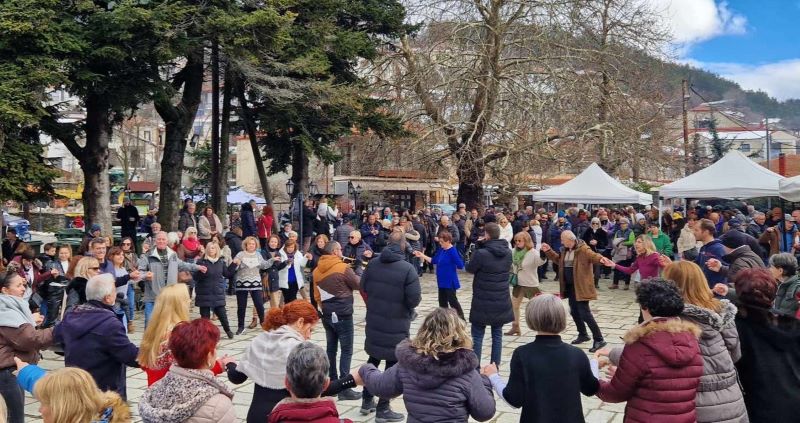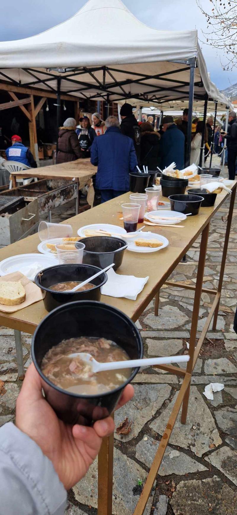 Παρά το τσουχτερό κρύο, η πέτρινη κεντρική πλατεία του χωριού, γέμισε μυρωδιές, ακούσματα και χρώματα της παράδοσης, αποτελώντας για ακόμη μια φορά σημείο συνάντησης για ντόπιους και επισκέπτες.