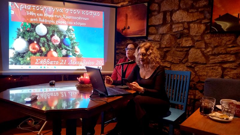Ειδικότερα, για τα Χριστούγεννα στη Γαλλία μίλησε η Όλγα Βαρδάκα (Καθηγήτρια Γαλλικών), για τα Χριστούγεννα στην Αγγλία η Ελένη Δεληβοριά (Εκπαιδευτικός-Συγγραφέας), για τα Χριστούγεννα στη Γερμανία η Νατάσα Καρυπίδου (Καθηγήτρια Γερμανικών) και για τα Χριστούγεννα στην Ιταλία η Αναστασία Μακρή (Εκπαιδευτικός).