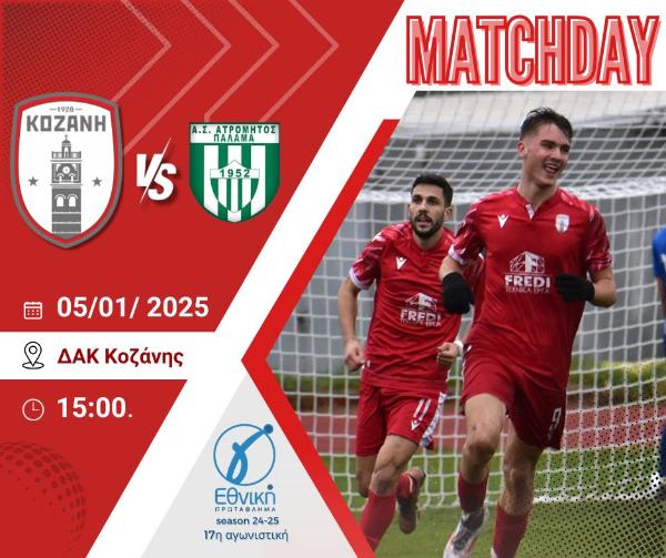 Τον Ατρόμητο Παλαμά αντιμετωπίζει η ομάδα μας την Κυριακή 5 Ιανουαρίου στο ΔΑΚ Κοζάνης και ώρα 3.00μ.μ.