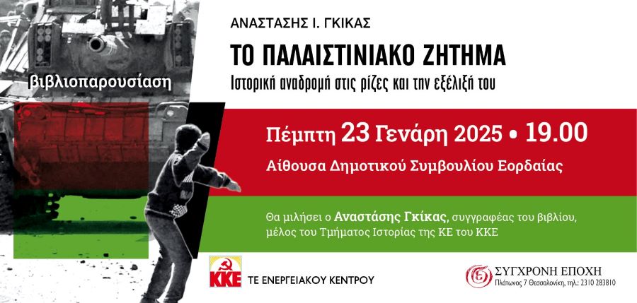 Η Τομεακή Επιτροπή Ενεργειακού Κέντρου του ΚΚΕ και οι εκδόσεις Σύγχρονη Εποχή, σας προσκαλούν στην παρουσίαση του βιβλίου του Αναστάση Γκίκα, μέλους του τμήματος ιστορίας της Κ.Ε. του ΚΚΕ: