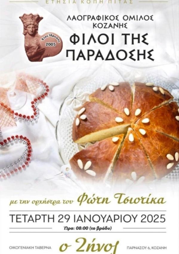Ο Λαογραφικός Όμιλος “Φίλοι της Παράδοσης” σας προσκαλεί στην εκδήλωση κοπής της βασιλόπιτας την Τετάρτη 29 Ιανουαρίου στην ταβέρνα ‘Ο Ζήνος’.