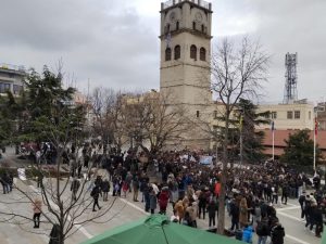 Έπειτα, ακολούθησε πορεία με συνθήματα και τελικό προορισμό τον σιδηροδρομικό σταθμό της Κοζάνης.