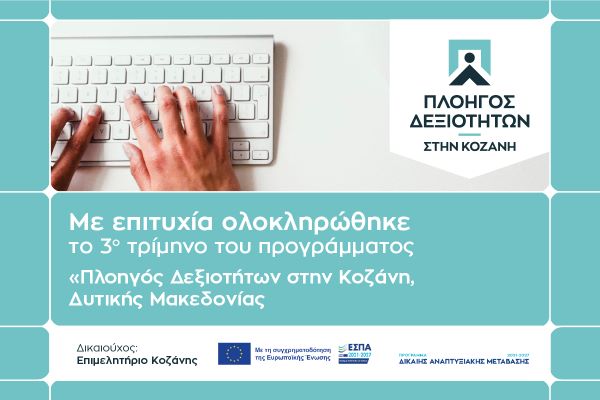 Προχωρά η υλοποίηση του έργου κατάρτισης των 500 ανέργων του Νομού Κοζάνης σε νέες κρίσιμες δεξιότητες, με Δικαιούχο το Επιμελητήριο Κοζάνης. Πρόκειται για την πράξη «Πλοηγός Δεξιοτήτων στην Κοζάνη Δυτικής Μακεδονίας» με κωδικό ΟΠΣ (MIS) 6001146 η οποία υλοποιείται με χρηματοδότηση της Ευρωπαϊκής Ένωσης στα πλαίσια του ΕΣΠΑ 2021-2017, και συγκεκριμένα του Προγράμματος Δίκαιης Αναπτυξιακής Μετάβασης. Το έργο αφορά στην απόκτηση και επικαιροποίηση – αναβάθμιση «ψηφιακών και πράσινων» δεξιοτήτων που άπτονται «ψηφιακών και πράσινων επαγγελμάτων» υψηλής ζήτησης, για ανέργους της υπό μετάβαση περιοχής του Νομού Κοζάνης.