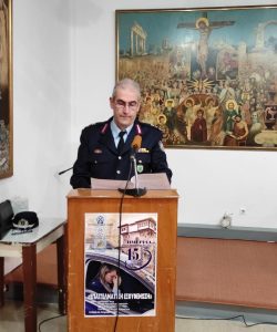 Ακολούθως, χαιρετισμό απηύθυναν ο Δήμαρχος Κοζάνης, κ. Ιωάννης Κοκκαλιάρης, ο πρόεδρος του Συνδέσμου Γραμμάτων και Τεχνών Κοζάνης, κ. Πολυνείκης ΑΓΓΕΛΗΣ και η πρόεδρος της Τοπικής Διοίκησης Κοζάνης της Διεθνούς Ένωσης Αστυνομικών (Ι.Ρ.Α.), κα. Μάρθα ΠΑΠΑΔΟΠΟΥΛΟΥ.