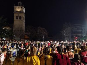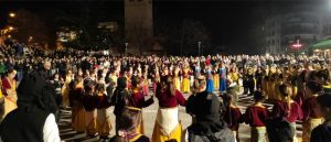 Χορευτές και χορεύτριες των ποντιακών σωματείων του Δήμου Κοζάνης σε τρεις ομόκεντρους κύκλους παρουσίασαν ποντιακούς χορούς και καταχειροκροτήθηκαν από τον κόσμο που τους παρακολουθούσε.