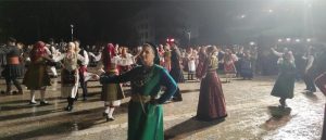 Έτσι τα χορευτικά τμήματα του Συνδέσμου, έκαναν την έκπληξη και βγήκαν να χορέψουν το έντεκα στην κεντρική πλατεία λίγο μετά τις 8μ.μ.