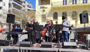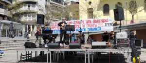 Συναυλία αφιερωμένη στη μνήμη των θυμάτων του τραγικού σιδηροδρομικού δυστυχήματος των Τεμπών, πραγματοποιήσαν φοιτητές του Πανεπιστημίου Δυτικής Μακεδονίας, το μεσημέρι της Τετάρτης 9 Απριλίου στην κεντρική πλατεία Κοζάνης, μετά την λήξη των συγκεντρώσεων για την πανεργατική απεργία.