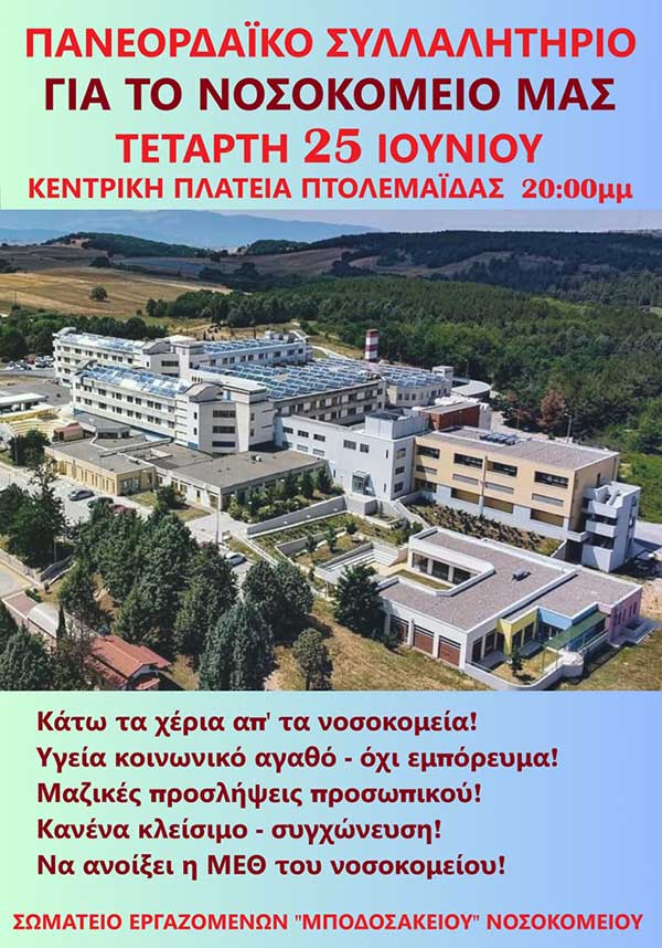 Χρειάζεται να αντιδράσουμε. Σήμερα πρέπει να δυναμώσει ο αγώνας από όλους τους φορείς και το λαό της Εορδαίας για να ενισχυθεί άμεσα το Γενικό Νοσοκομείο Πτολεμαΐδας γιατί έχουμε ανάγκη από ένα σύγχρονο, ποιοτικό, αποκλειστικά δημόσιο και δωρεάν σύστημα Υγείας.