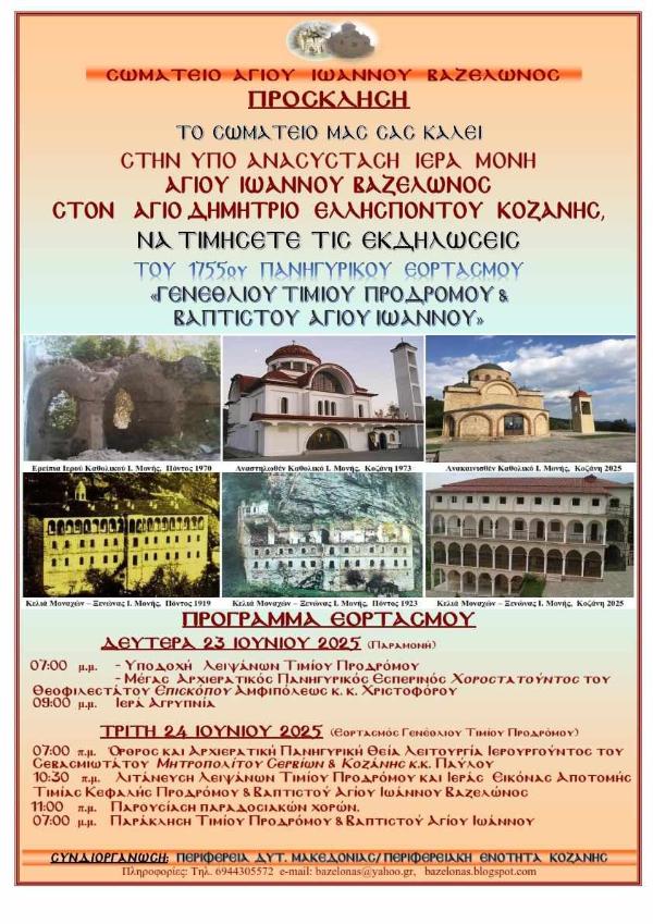 Σωματείο Αγίου Ιωάννου Βαζελώνος – Πρόγραμμα εορτασμού 23 & 24 Ιουνίου