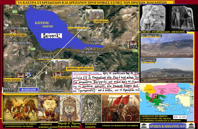 *Η D. M.Nikol Άγγλος βυζαντινολόγος, που ήταν ένας από τους διαπρεπέστερους στο ειδος του του 20ού αιώνα.τοποθετεί τα Σταρείδολα στην Κοζάνη .
