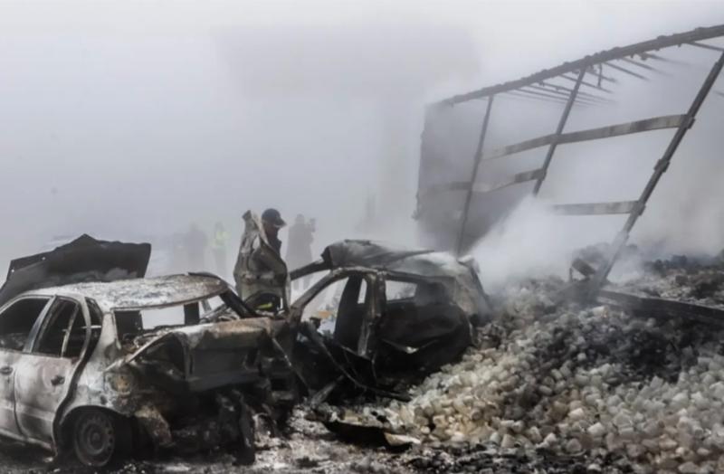 Από τη σύγκρουση της νταλίκας με τα οχήματα προκλήθηκε μεγάλη φωτιά που οδήγησε στον θάνατο τους δύο ηλικιωμένους επιβαίνοντες οι οποίοι είχαν έρθει για διακοπές στην Ελλάδα και κατευθύνονταν στο χωριό τους στη δυτική Μακεδονία. Εξαιτίας της φωτιάς καταστράφηκαν στοιχεία που θα μπορούσαν να φωτίσουν περισσότερο τις συνθήκες του φοβερού δυστυχήματος. Αρχικά κάηκε ο ταχογράφος της νταλίκας, ενώ διακόπηκε και η καταγραφή από το κλειστό κύκλωμα τηλεόρασης των διοδίων. Έγκυρες πληροφορίες ανέφεραν ότι σύμφωνα με τις πραγματογνωμοσύνες η φωτιά προκλήθηκε όταν από τη σύγκρουση άνοιξε το καπάκι του ρεζερβουάρ του αυτοκινήτου των ηλικιωμένων, χύθηκε στο έδαφος βενζίνη και από τους σπινθήρες που ακολούθησαν επεκτάθηκε άμεσα η φωτιά και προκλήθηκε έκρηξη.
