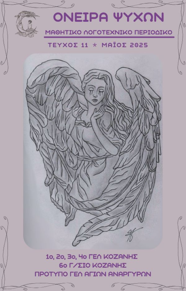 Το περιοδικό «ΟΝΕΙΡΑ ΨΥΧΩΝ» (Βραβείο Γυναικείας Λογοτεχνικής Συντροφιάς, 2021), μια πρωτοπόρα συνεργατική προσπάθεια του 1ου, 2ου, 3ου, 4ου ΓΕΛ Κοζάνης, του 6ου Γυμνασίου Κοζάνης και του Πρότυπου ΓΕΛ Αγ. Αναργύρων Αττικής, έχει τη χαρά να ανακοινώσει την εκτύπωση του νέου τεύχους 11. Ποιήματα, διηγήματα, άρθρα για διάφορα ζητήματα (διατροφή, μόδα, πόλεμο, για τη γενοκτονία των Ποντίων, για τα podcast), μαθητικά φωτορεπορτάζ, βιβλιοπαρουσιάσεις, αφίσες, συνεντεύξεις με ανθρώπους της Κοζάνης (με τον παλαίμαχο ποδοσφαιριστή Νίκο Νιόπλια και τον πρόεδρο της ΕΛΜΕ Κοζάνης, Γιάννη Σκόρδα), παιχνίδια, ζωγραφιές, φωτογραφίες, βίντεο, σταυρόλεξα και πολλά άλλα αποτελούν την πλούσια και ενδιαφέρουσα ύλη αυτού του νέου τεύχους. Πάνω από εκατό μαθητές/-τριες κατέθεσαν τη δημιουργία τους, ενώ γύρω στους σαράντα μαθητές/-τριες συνεργάστηκαν για το στήσιμο του τεύχους και τη δημιουργία του εξώφυλλου. Συγχαρητήρια σε όλα τα παιδιά και τους/τις καθηγητές/-τριες των έξι σχολείων, που συνεργάστηκαν αρμονικά για αυτή την έκδοση.