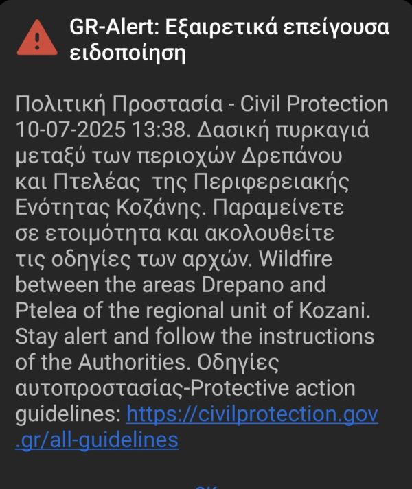 Στις 1.38μ.μ. εστάλη μήνυμα από την Πολιτική Προστασία στους κατοίκους να βρίσκονται σε ετοιμότητα και να ακολουθούν τις οδηγίες των Αρχών.