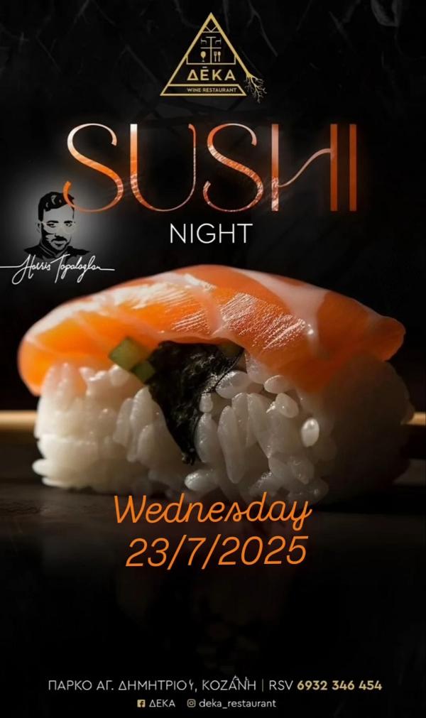 Την Τετάρτη 23 Ιουλίου, το ΔΕΚΑ μεταμορφώνεται σε ιαπωνικό sushi bar και σας προσκαλεί να απολαύσετε εκλεκτές δημιουργίες με φρέσκα υλικά, συνοδευόμενες από δροσερά cocktails και την καλύτερη μουσική.