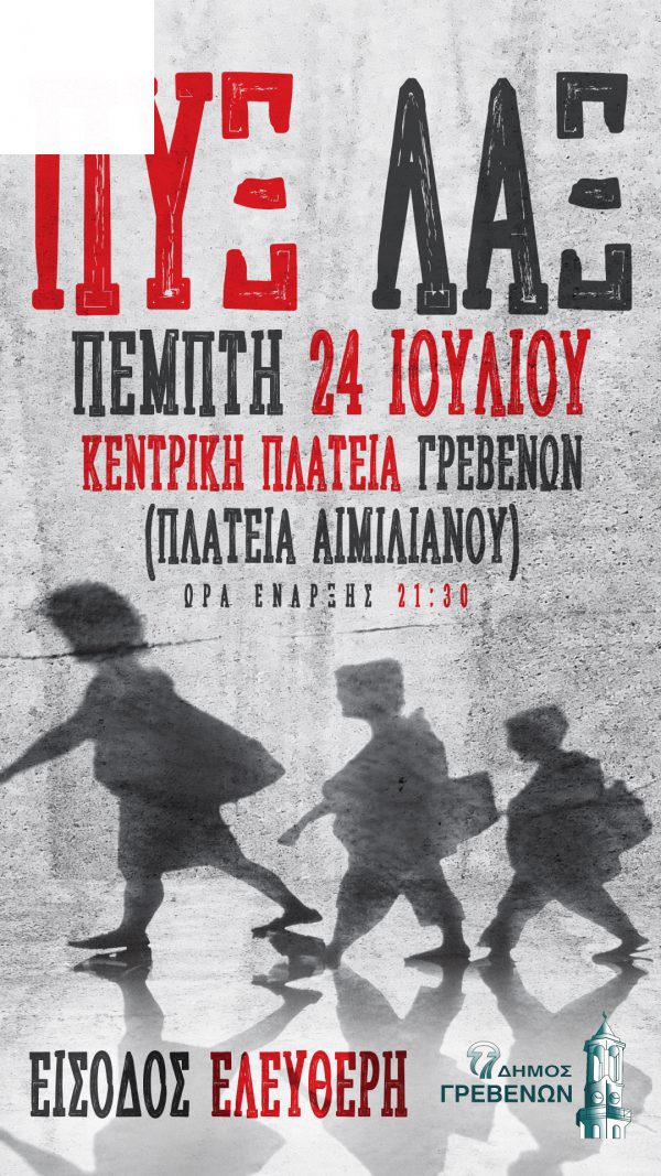 Ο Δήμος Γρεβενών, στο πλαίσιο των εκδηλώσεων «Πολιτιστικό Καλοκαίρι 2025», έχει την τιμή και τη χαρά να υποδεχθεί ένα από τα σημαντικότερα κεφάλαια της ελληνικής μουσικής ιστορίας: το θρυλικό συγκρότημα ΠΥΞ  ΛΑΞ.